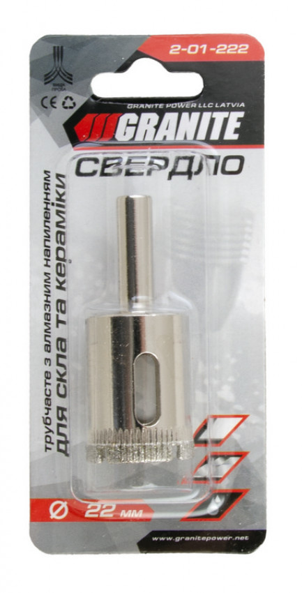 Про товар Свердло трубчасте GRANITE з алмазним напиленням для скла та плитки 22 мм 2-01-222