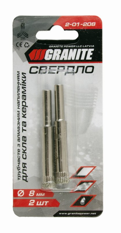 Про товар Свердло трубчасте GRANITE з алмазним напиленням для скла та плитки 8 мм 2 шт 2-01-208