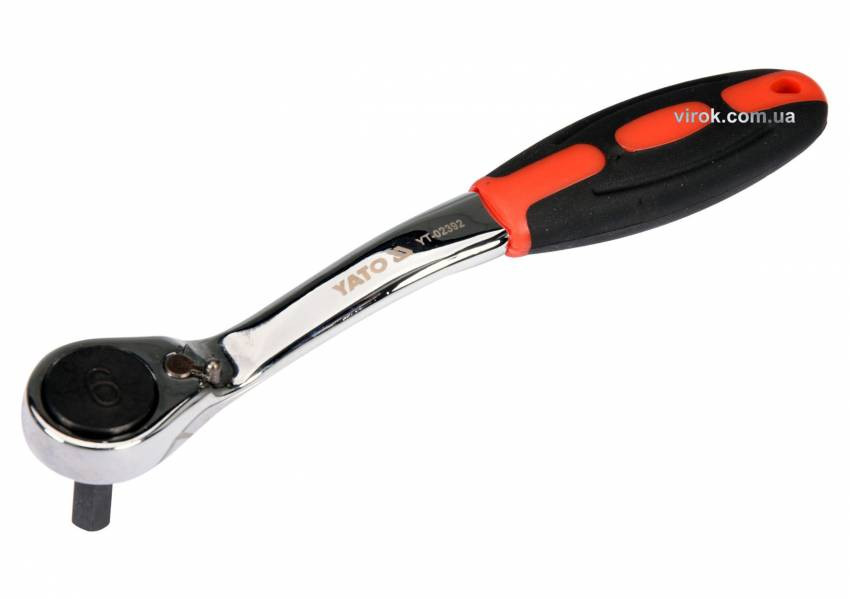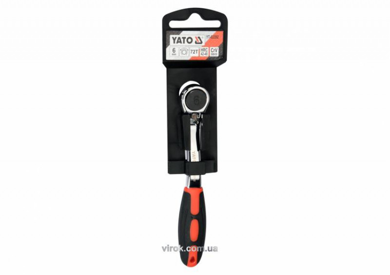 Тріщатка з шестигранником, вигнута YATO: HEX6, HRC 42-48, 72T, Cr-V, з прогумованою ручкою