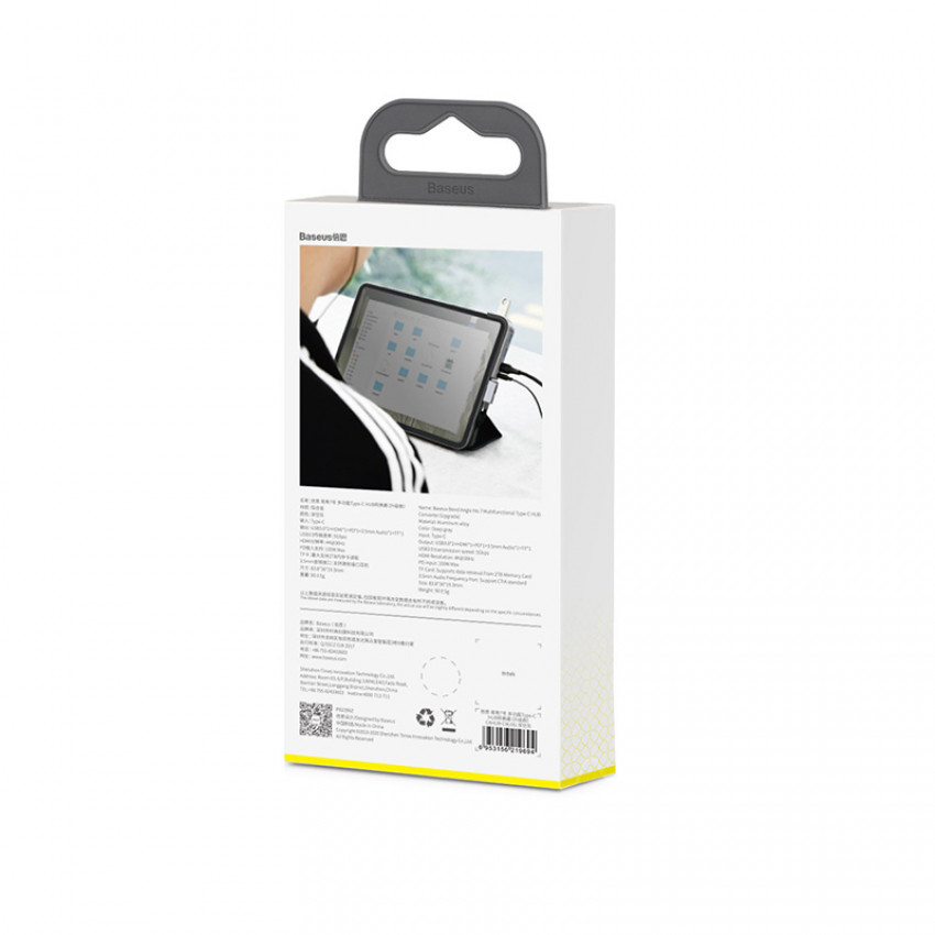 Baseus Bend Angle No.7 Multifunctional Type-C являє собою USB-хаб, створений спеціально для спільної роботи з планшетами iPad Pro і ноутбуками MacBook Він оснащений двома портами USB 3.0, роз'ємом HDMI з підтримкою 4K, слотом для карт пам'яті "яті MicroSD, а також скрізним портом USB-C (PD 100W) і аудіороз'ємом 3.5 мм. Хаб дозволяє розширити можливості вашого планшетного комп'ютера або ноутбука, оснащеного всього одним роз'ємом USB-C. Baseus Bend Angle No.7 виконаний з міцного пластику та легкого алюмінію, які забезпечують довговічність пристрою та надійний захист внутрішніх елементів. що дозволяє одночасно задіяти всі роз'єми. Пристрій забезпечує швидке та зручне підключення різної периферії або накопичувачів до iPad Pro та MacBook. Інтерфейс USB 3.0 дозволить здійснювати запис при швидкості до 5 Гбіт/с. Також хаб дозволяє здійснювати підзарядку планшета чи ноутбука. Роз'єм HDMI дозволяє виводити на додатковий екран відеоконтент з максимальною роздільною здатністю 4K.