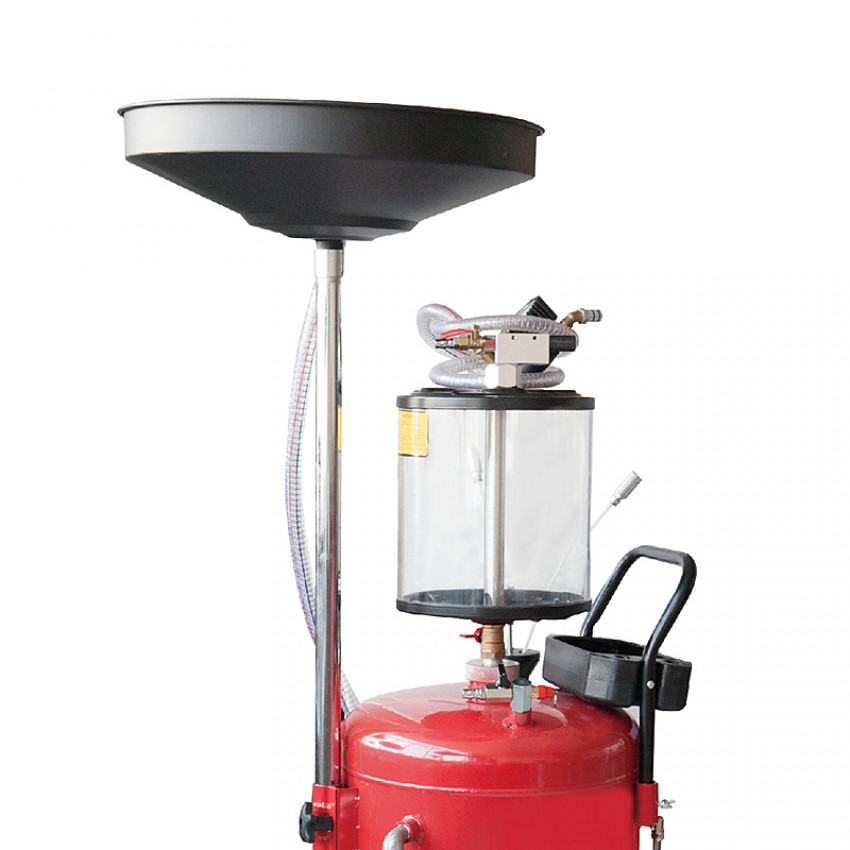 Наявність пневматичної насоса дозволяє дуже швидко і ефективно отримувати технічні рідини. 12-літрова мірна колба дозволяє бачити обсяг витягуваної рідини. Подвійний резервуар збільшує обсяг збереженої рідини (90+12 літрів)