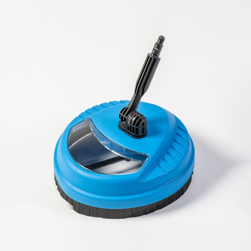 Велика обертаюча щітка для очищення великих рівних поверхонь забезпечує ретельне, зручне та швидке очищення без розбризкування води. Обертовий важіль із двома насадками високого тиску ефективно видаляє забруднення. Корпус надійно захищає оператора та оточення від бризок води, а струмені, що піднімають насадку вгору, полегшують маневрування. Використовуючи цю щітку, ви заощадите набагато більше часу, ніж при роботі зі звичайним пістолетом-ланцою. Підходить для очищення: плитки, бруківки, каменю, фасадів.