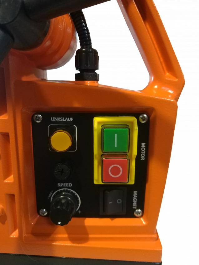Багатофункціональний свердлильний верстат OND-48/2WDO для свердління металу з електромагнітним тримачем. Редуктор передачі залитий рідким маслом, тому має тривалий термін експлуатації. Верстат з двома передачами швидкості, з системою безпеки - блокування - двигун працюватиме лише в тому випадку, якщо магніт включений. Електричне безступеневе регулювання швидкості, подвійний хвостик з високим ходом. Макс діаметр свердла 48 мм. Реверс.