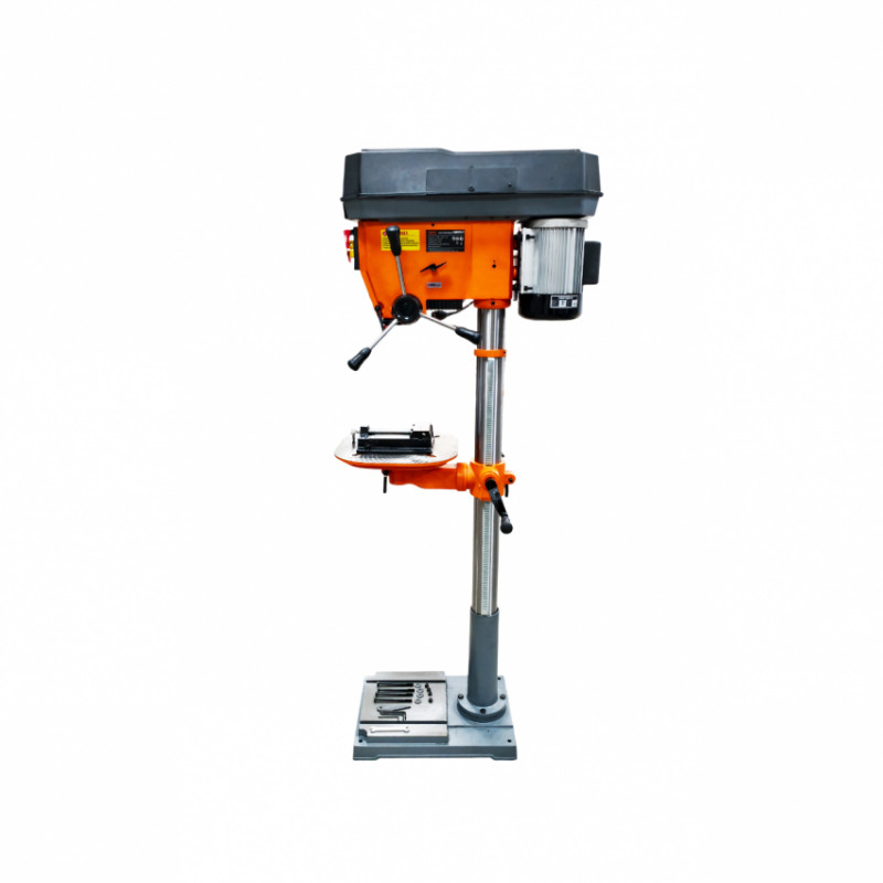 Хід шпинделя становить вражаючі 152 мм, що дозволяє виконувати глибоке свердління в один прохід. Патрон безключевий 16 мм із конусом МТ2 — зручний і швидкий у використанні. Великий робочий стіл розміром 355?355 мм і відстань від шпинделя до колони 225 мм дають змогу комфортно працювати з деталями значних розмірів.