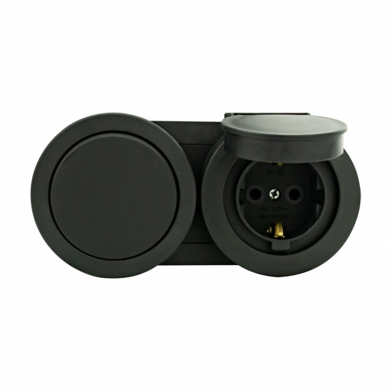 Вимикач 1-клавішний + Розетка з заземленням з кришкою антрацит xOne