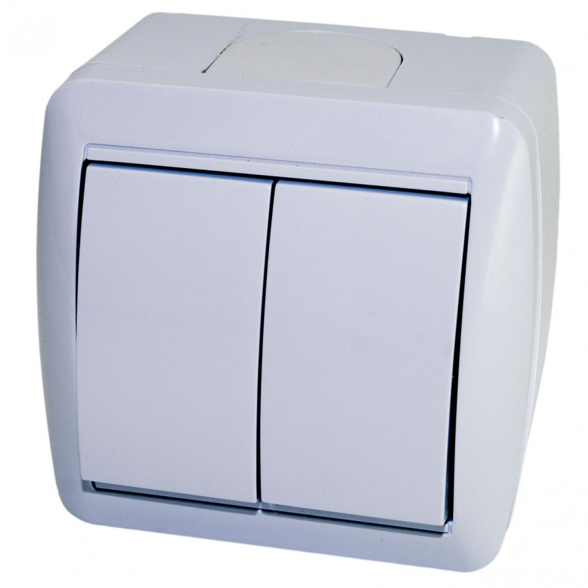 Про товар Вимикач накладний Quantum двоклавішний бризкозахищений білий, 1шт/уп