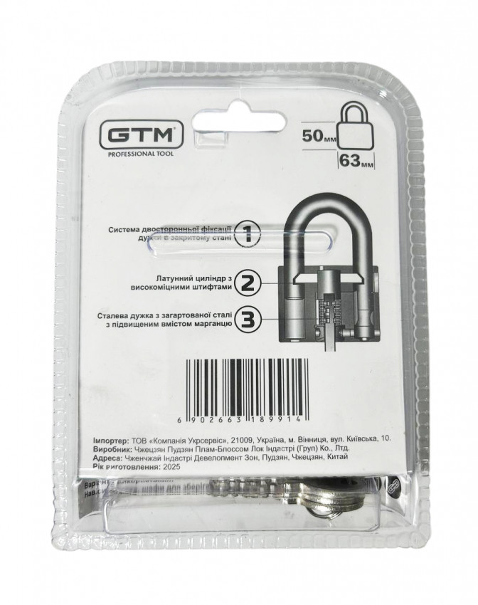 Опис навісного замка GTM BX0163 63 мм
