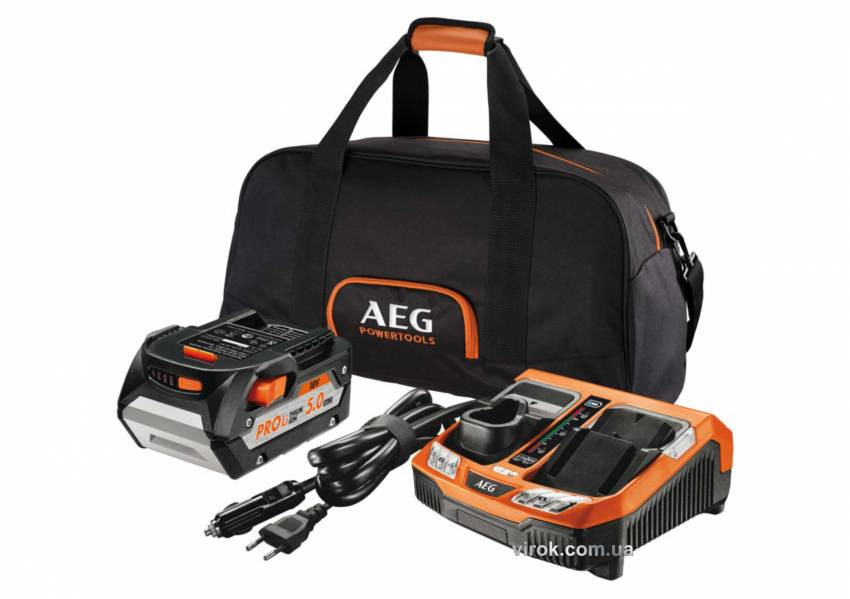 Характеристики Зарядний пристрій 2-порт. 12-18 В AEG живлення- 230 В і 12 В, з акумулятором - 5 Агод, в сумці