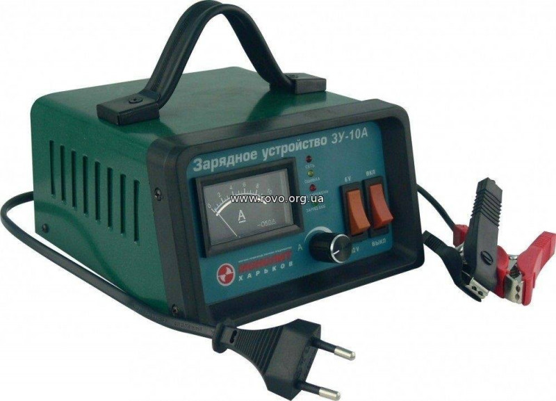 Автомобільний зарядний пристрій 0-10 А, 6V/12V Призначено для зарядки акумуляторних батарей легкових автомобілів з живленням постійного струму 6 і 12 В.