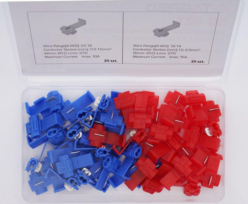 Затискачі для електрокабелів TAGRED TA4164 - використовуються для швидкого та легкого з’єднання електричних кабелів без використання спеціальних інструментів. Просто вставте два кінці підготовлених кабелів у швидкий роз’єм і затягніть його пластиковим затискачем.