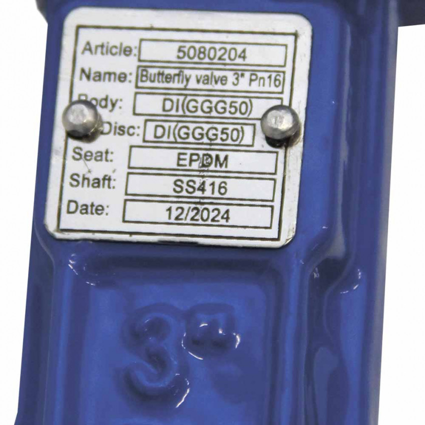 Затвор міжфланцевий «батерфляй» 3'' корпус чавун (GGG50) диск чавун (GGG50) EPDM PN16 FLORA (5080204)