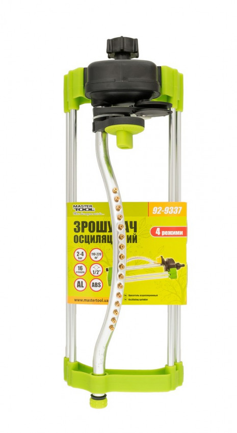 Про товар Зрошувач осциляційний MASTERTOOL 1/2" 16 отворів з латунними форсунками основа пластик+метал 92-9337