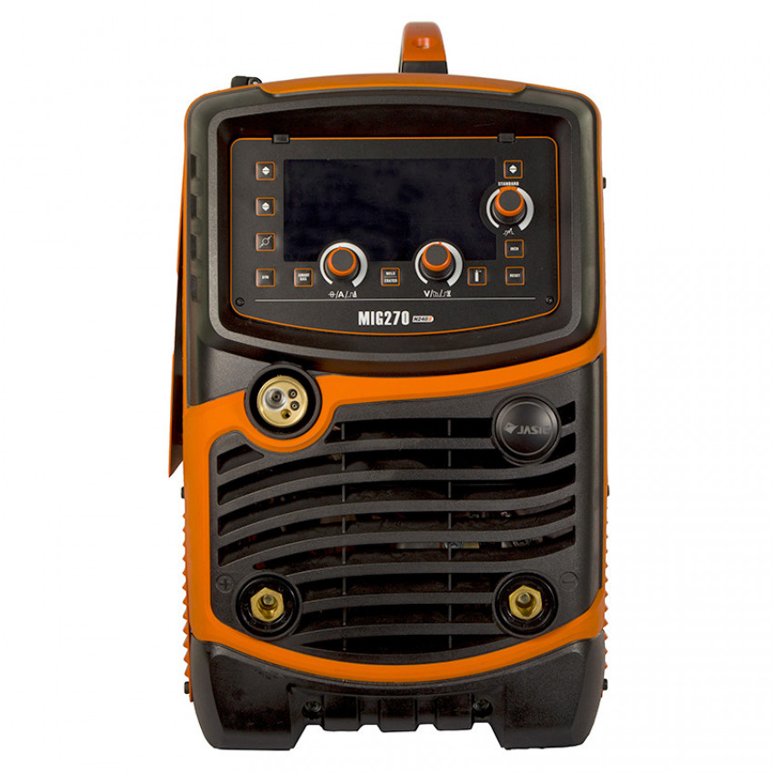 Jasic MIG-270 (N248 II) JET - це зварювальний інвертор для напівавтоматичного зварювання в середовищі захисних газів (MIG/MAG), аргонодугового зварювання з контактним підпалом (TIG Lift), а також ручного дугового зварювання (MMA). Можлива робота дротом суцільного перерізу діаметрами 0.8 та 1.0 мм.