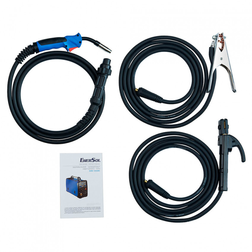 | Комплектація | Кабель електродотримача - 1 шт. Кабель затиску маси - 1 шт. Пальник для напівавтоматичного зварювання - 1 шт. Зварювальний щиток - 1 шт. Молоток-щітка - 1 шт. Інструкція з експлуатації |